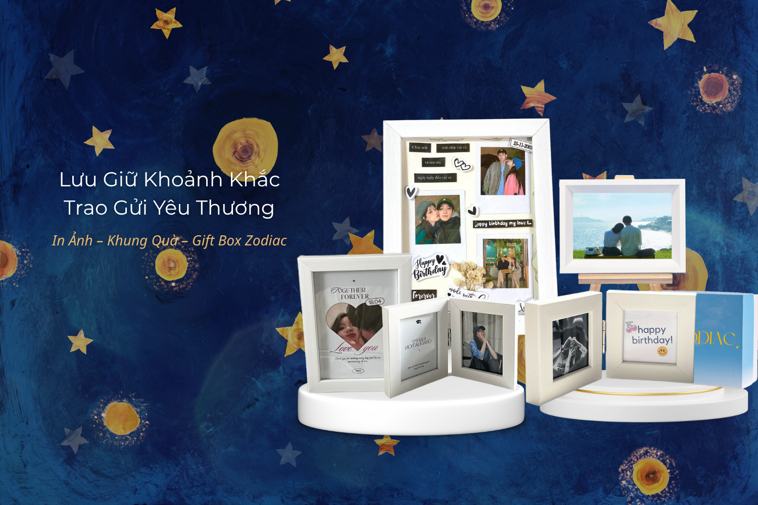 “Zodiac tin rằng mỗi bức ảnh đều có câu chuyện riêng – và chúng mình giúp bạn biến câu chuyện ấy thành những món quà xinh xắn, mang dấu ấn cung hoàng đạo của riêng bạn 💕”
